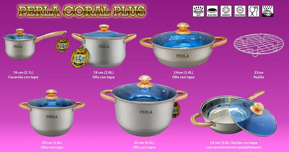 BATERIA DE COCINA PERLA DE 13 PIEZAS MOD. PERLA CORAL